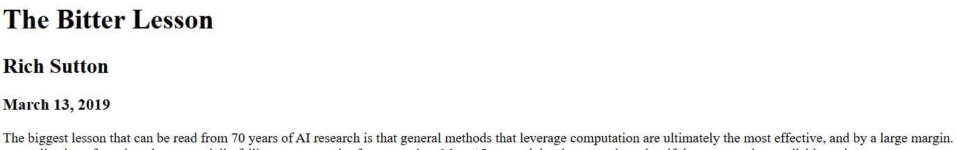 Bitter Lesson, an essay by one of the creators of reinforcement learning, first published back in 2019, recently made the rounds again now that its author, Professor Richard Sutton, was named a winner of this year’s ACM Turing Award. In it, he points out that general methods have won, again and again, beating out domain-specific human expertise.